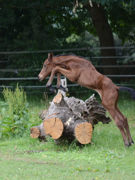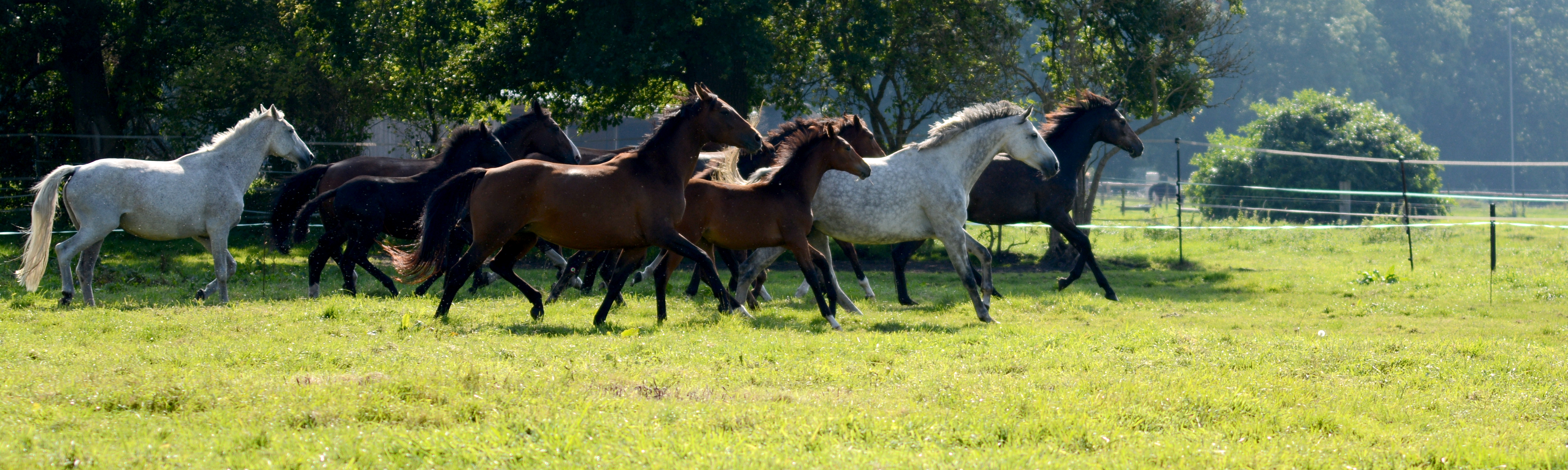 Der Stutenstamm der Jucunde geht zurück auf die im Jahr 1883 auf der Zuchtstätte Köser, Bützflether Sand in Kehdingen (bei Stade) gezüchtete Stute Jucunde. Aus diesem Stamm gehen viele national und international erfolgreiche Pferde hervor. 2010 konnten wir Galoupee (Grosso Z x Argentan), gezüchtet von dem Farvener Züchter Hinrich Wülpern, erwerben. Über verschiedene Station in Deutschland und Österreich kam Galoupee damit wieder an Ihren Geburtsort nach Farven zurück. Galoupee hat uns mit Quentchen Glück (*2014) eine Stute geschenkt, mit der wir sehr viel Freude haben und den Stutenstamm weiter pflegen.