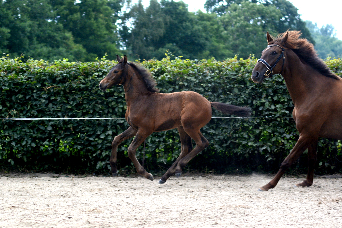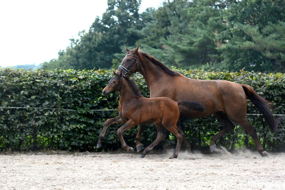 Der Stutenstamm der Jucunde geht zurück auf die im Jahr 1883 auf der Zuchtstätte Köser, Bützflether Sand in Kehdingen (bei Stade) gezüchtete Stute Jucunde. Aus diesem Stamm gehen viele national und international erfolgreiche Pferde hervor. 2010 konnten wir Galoupee (Grosso Z x Argentan), gezüchtet von dem Farvener Züchter Hinrich Wülpern, erwerben. Über verschiedene Station in Deutschland und Österreich kam Galoupee damit wieder an Ihren Geburtsort nach Farven zurück. Galoupee hat uns mit Quentchen Glück (*2014) eine Stute geschenkt, mit der wir sehr viel Freude haben und den Stutenstamm weiter pflegen.