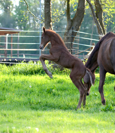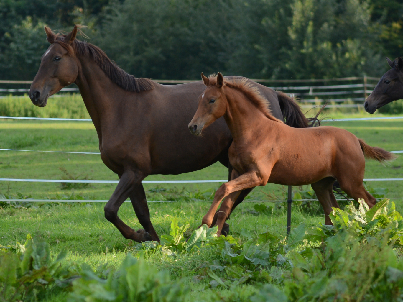 Der Stutenstamm der Jucunde geht zurück auf die im Jahr 1883 auf der Zuchtstätte Köser, Bützflether Sand in Kehdingen (bei Stade) gezüchtete Stute Jucunde. Aus diesem Stamm gehen viele national und international erfolgreiche Pferde hervor. 2010 konnten wir Galoupee (Grosso Z x Argentan), gezüchtet von dem Farvener Züchter Hinrich Wülpern, erwerben. Über verschiedene Station in Deutschland und Österreich kam Galoupee damit wieder an Ihren Geburtsort nach Farven zurück. Galoupee hat uns mit Quentchen Glück (*2014) eine Stute geschenkt, mit der wir sehr viel Freude haben und den Stutenstamm weiter pflegen.
