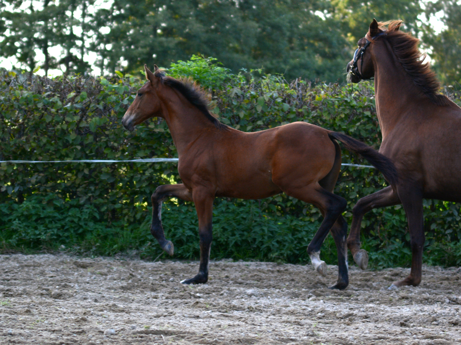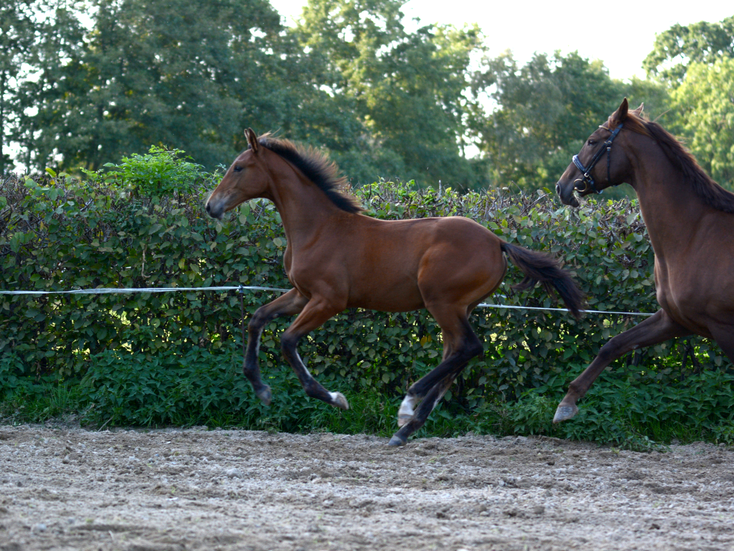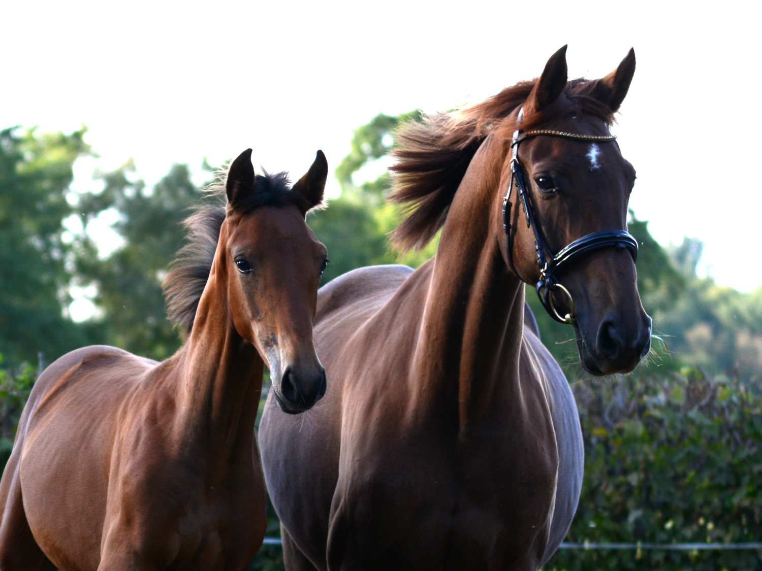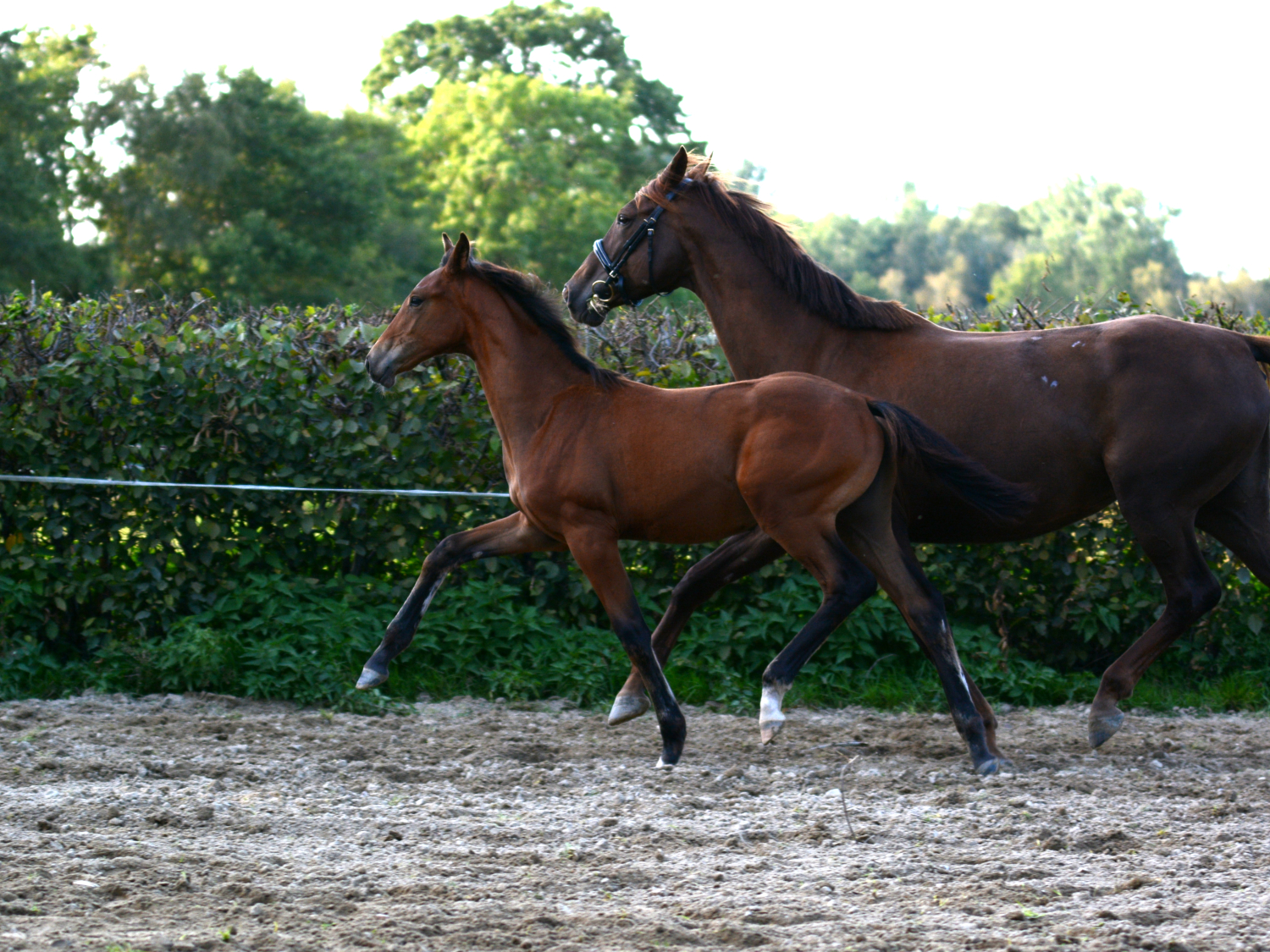 Der Stutenstamm der Jucunde geht zurück auf die im Jahr 1883 auf der Zuchtstätte Köser, Bützflether Sand in Kehdingen (bei Stade) gezüchtete Stute Jucunde. Aus diesem Stamm gehen viele national und international erfolgreiche Pferde hervor. 2010 konnten wir Galoupee (Grosso Z x Argentan), gezüchtet von dem Farvener Züchter Hinrich Wülpern, erwerben. Über verschiedene Station in Deutschland und Österreich kam Galoupee damit wieder an Ihren Geburtsort nach Farven zurück. Galoupee hat uns mit Quentchen Glück (*2014) eine Stute geschenkt, mit der wir sehr viel Freude haben und den Stutenstamm weiter pflegen.