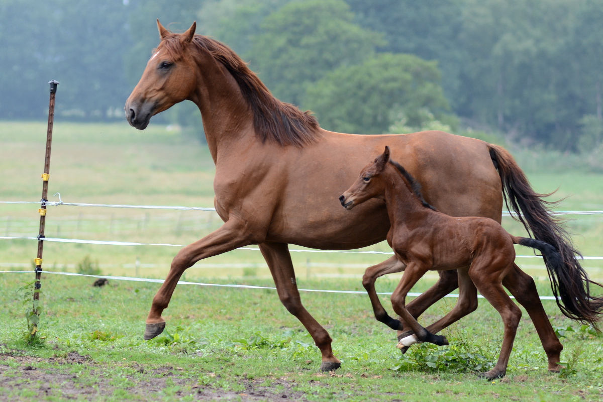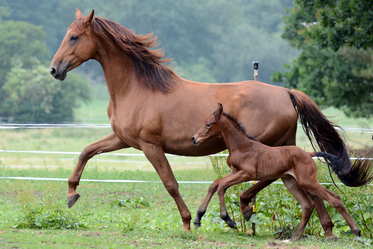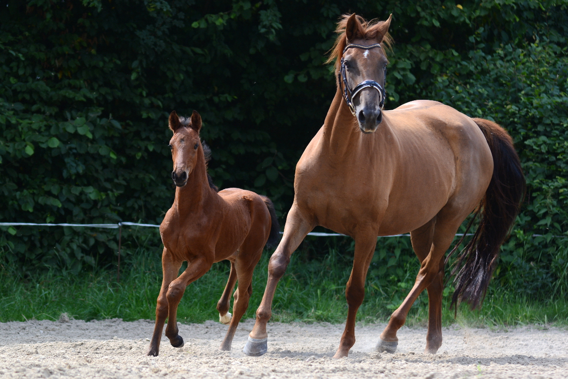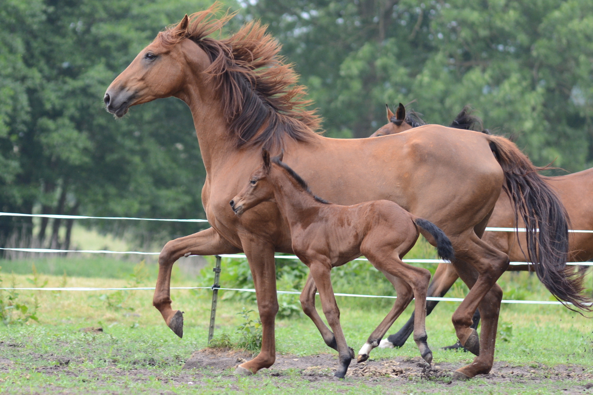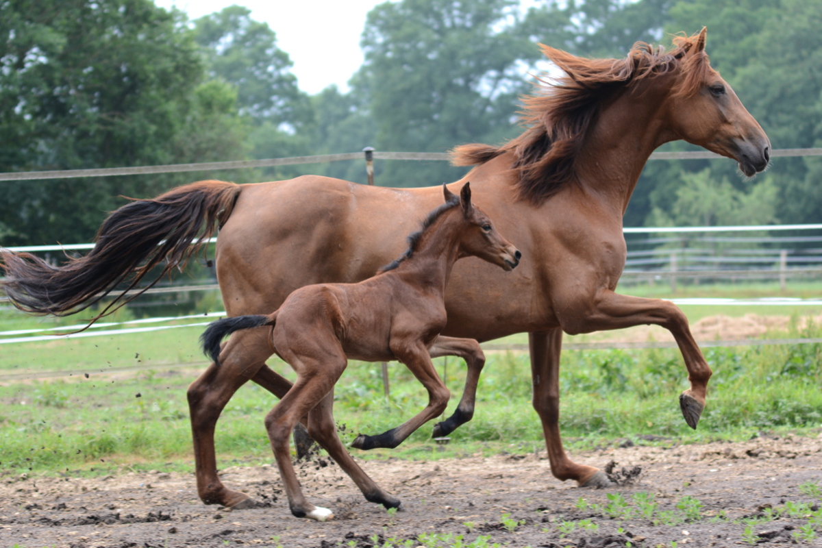 Der Stutenstamm der Jucunde geht zurück auf die im Jahr 1883 auf der Zuchtstätte Köser, Bützflether Sand in Kehdingen (bei Stade) gezüchtete Stute Jucunde. Aus diesem Stamm gehen viele national und international erfolgreiche Pferde hervor. 2010 konnten wir Galoupee (Grosso Z x Argentan), gezüchtet von dem Farvener Züchter Hinrich Wülpern, erwerben. Über verschiedene Station in Deutschland und Österreich kam Galoupee damit wieder an Ihren Geburtsort nach Farven zurück. Galoupee hat uns mit Quentchen Glück (*2014) eine Stute geschenkt, mit der wir sehr viel Freude haben und den Stutenstamm weiter pflegen.