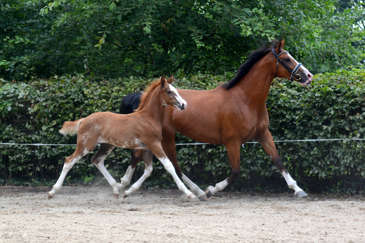 Der Stutenstamm der Jucunde geht zurück auf die im Jahr 1883 auf der Zuchtstätte Köser, Bützflether Sand in Kehdingen (bei Stade) gezüchtete Stute Jucunde. Aus diesem Stamm gehen viele national und international erfolgreiche Pferde hervor. 2010 konnten wir Galoupee (Grosso Z x Argentan), gezüchtet von dem Farvener Züchter Hinrich Wülpern, erwerben. Über verschiedene Station in Deutschland und Österreich kam Galoupee damit wieder an Ihren Geburtsort nach Farven zurück. Galoupee hat uns mit Quentchen Glück (*2014) eine Stute geschenkt, mit der wir sehr viel Freude haben und den Stutenstamm weiter pflegen.