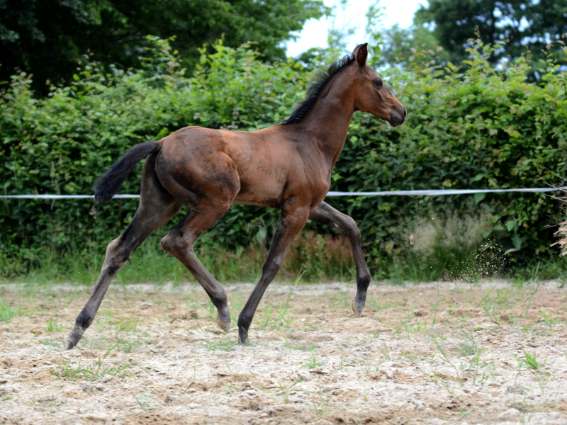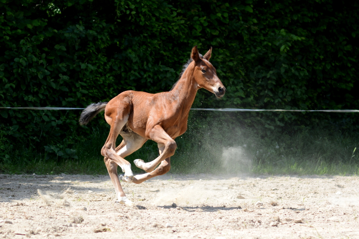 Der Stutenstamm der Jucunde geht zurück auf die im Jahr 1883 auf der Zuchtstätte Köser, Bützflether Sand in Kehdingen (bei Stade) gezüchtete Stute Jucunde. Aus diesem Stamm gehen viele national und international erfolgreiche Pferde hervor. 2010 konnten wir Galoupee (Grosso Z x Argentan), gezüchtet von dem Farvener Züchter Hinrich Wülpern, erwerben. Über verschiedene Station in Deutschland und Österreich kam Galoupee damit wieder an Ihren Geburtsort nach Farven zurück. Galoupee hat uns mit Quentchen Glück (*2014) eine Stute geschenkt, mit der wir sehr viel Freude haben und den Stutenstamm weiter pflegen.