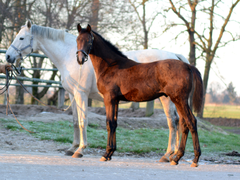 Der Stutenstamm der Jucunde geht zurück auf die im Jahr 1883 auf der Zuchtstätte Köser, Bützflether Sand in Kehdingen (bei Stade) gezüchtete Stute Jucunde. Aus diesem Stamm gehen viele national und international erfolgreiche Pferde hervor. 2010 konnten wir Galoupee (Grosso Z x Argentan), gezüchtet von dem Farvener Züchter Hinrich Wülpern, erwerben. Über verschiedene Station in Deutschland und Österreich kam Galoupee damit wieder an Ihren Geburtsort nach Farven zurück. Galoupee hat uns mit Quentchen Glück (*2014) eine Stute geschenkt, mit der wir sehr viel Freude haben und den Stutenstamm weiter pflegen.